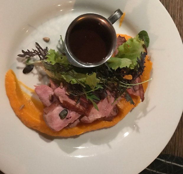 Ivo on the other hand was less excited about his main of grilled duck breast with pumpkin puree, plum sauce and roasted seeds. His feedback; the dish was over complicated (too sweet)!